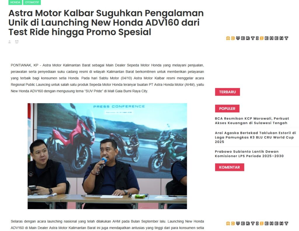 Astra Motor Kalbar Suguhkan Pengalaman Unik di Launching New Honda ADV160 dari Test Ride hingga Promo Spesial by Muhammad Arif 13 Oktober 2025 in Silahkan kunjungi https://www.kapuaspost.web.id/2025/10/astra-motor-kalbar-suguhkan-pengalaman.html. Tags: astra Astra Motor kalbar Astra Motor Pontianak astramotor honda kalbar pontianak sepeda motor You Might Like Regional Public Launching New ADV160 The SUV Pride Grand Launching New PCX 160 Truly Exceptional! Tetap hati-hati ya bro sist berkendara saat hujan.
