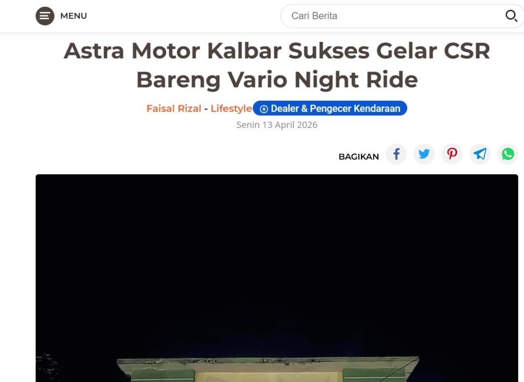 Astra Motor Kalbar Sukses Gelar CSR Bareng Vario Night Ride by Dodi Dodi 13 April 2026 in Silahkan kunjungi https://harianberkat.com/2026/04/13/astra-motor-kalbar-sukses-gelar-csr-bareng-vario-night-ride/. You Might Like Regional Public Launching New ADV160 The SUV Pride Grand Launching New PCX 160 Truly Exceptional! Tetap hati-hati ya bro sist berkendara saat hujan.