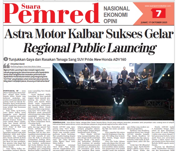 Astra Motor Kalbar Sukses Gelar Regional Public Launcing, Tunjukkan Gaya dan Rasakan Tenaga Sang SUV Pride New Honda ADV160 by masmul 17 Oktober 2025 in Silahkan buka . You Might Like Regional Public Launching New ADV160 The SUV Pride Grand Launching New PCX 160 Truly Exceptional! Tetap hati-hati ya bro sist berkendara saat hujan.