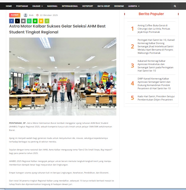 Astra Motor Kalbar Sukses Gelar Seleksi AHM Best Student Tingkat Regional by masmul 22 Oktober 2025 in Silahkan kunjungi https://www.suarapemredkalbar.com/read/potret/22102025/astra-motor-kalbar-sukses-gelar-seleksi-ahm-best-student-tingkat-regional. You Might Like Regional Public Launching New ADV160 The SUV Pride Grand Launching New PCX 160 Truly Exceptional! Tetap hati-hati ya bro sist berkendara saat hujan.