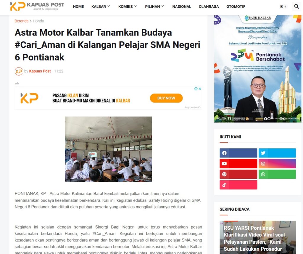 Astra Motor Kalbar Tanamkan Budaya #Cari_Aman di Kalangan Pelajar SMA Negeri 6 Pontianak by Muhammad Arif 22 Oktober 2025 in Silahkan kunjungi https://www.kapuaspost.web.id/2025/10/astra-motor-kalbar-tanamkan-budaya.html. Tags: astra Astra Motor kalbar Astra Motor Pontianak astramotor honda kalbar pontianak sepeda motor You Might Like Regional Public Launching New ADV160 The SUV Pride Grand Launching New PCX 160 Truly Exceptional! Tetap hati-hati ya bro sist berkendara saat hujan.