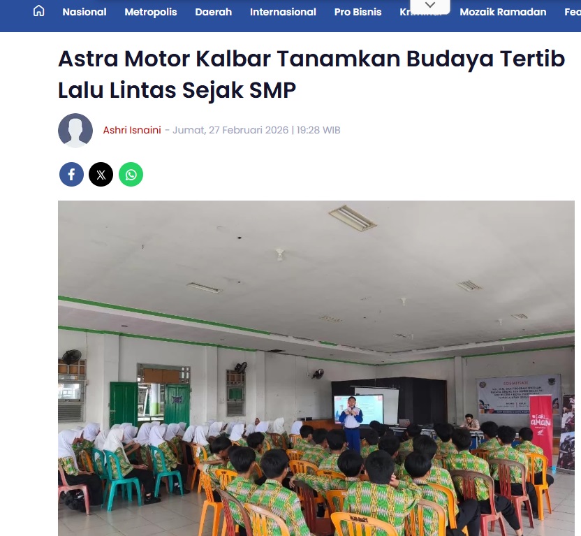 Astra Motor Kalbar Tanamkan Budaya Tertib Lalu Lintas Sejak SMP by Aristono Edi Kiswantoro 27 Februari 2026 in Silahkan kunjungi https://pontianakpost.jawapos.com/metropolis/1467251149/astra-motor-kalbar-tanamkan-budaya-tertib-lalu-lintas-sejak-smp. You Might Like Regional Public Launching New ADV160 The SUV Pride Grand Launching New PCX 160 Truly Exceptional! Tetap hati-hati ya bro sist berkendara saat hujan.