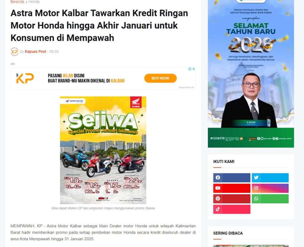 Astra Motor Kalbar Tawarkan Kredit Ringan Motor Honda hingga Akhir Januari untuk Konsumen di Mempawah by Muhammad Arif 11 Januari 2026 in Silahkan kunjungi https://www.kapuaspost.web.id/2026/01/astra-motor-kalbar-tawarkan-kredit.html. Tags: astra Astra Motor kalbar Astra Motor Pontianak astramotor honda kalbar pontianak sepeda motor You Might Like Regional Public Launching New ADV160 The SUV Pride Grand Launching New PCX 160 Truly Exceptional! Tetap hati-hati ya bro sist berkendara saat hujan.