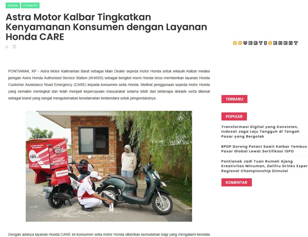 Astra Motor Kalbar Tingkatkan Kenyamanan Konsumen dengan Layanan Honda CARE