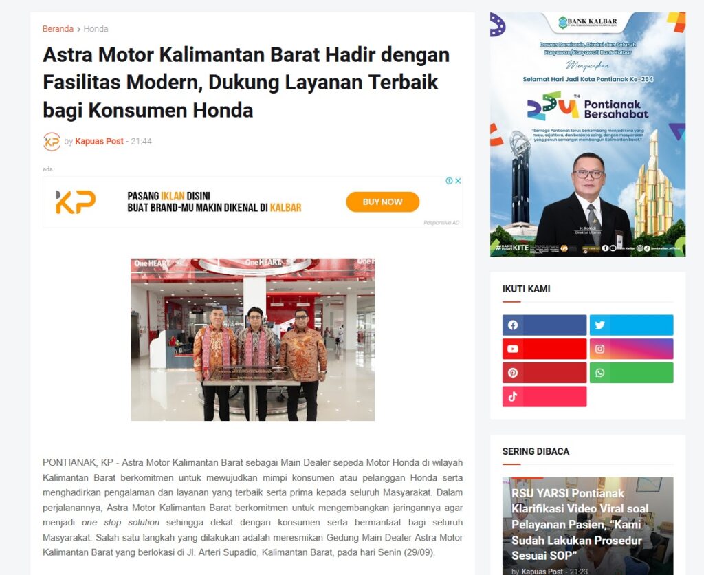 Astra Motor Kalimantan Barat Hadir dengan Fasilitas Modern, Dukung Layanan Terbaik bagi Konsumen Honda by Muhammad Arif 20 Oktober 2025 in Silahkan kunjungi https://www.kapuaspost.web.id/2025/10/astra-motor-kalimantan-barat-hadir.html. Tags: astra Astra Motor kalbar Astra Motor Pontianak astramotor honda kalbar pontianak sepeda motor You Might Like Regional Public Launching New ADV160 The SUV Pride Grand Launching New PCX 160 Truly Exceptional! Tetap hati-hati ya bro sist berkendara saat hujan.