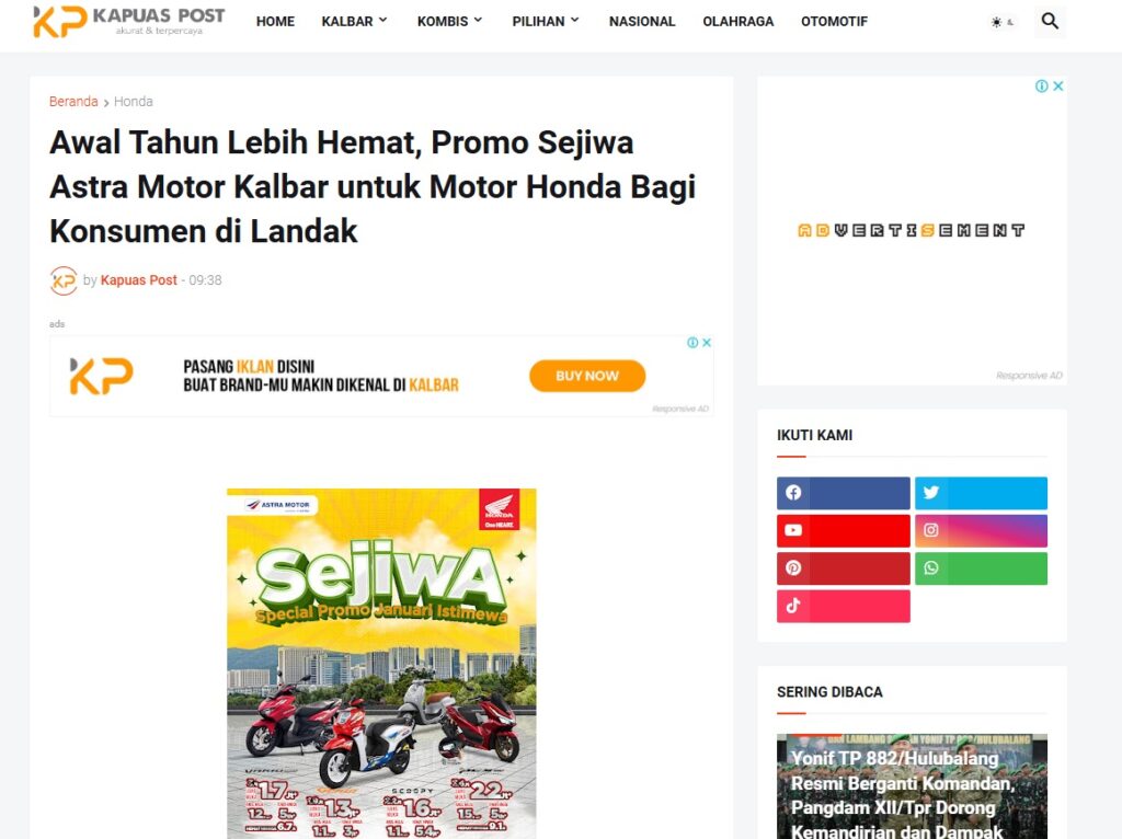Awal Tahun Lebih Hemat, Promo Sejiwa Astra Motor Kalbar untuk Motor Honda Bagi Konsumen di Landak by Muhammad Arif 26 Januari 2026 in Silahkan kunjungi https://www.kapuaspost.web.id/2026/01/awal-tahun-lebih-hemat-promo-sejiwa.html. Tags: astra Astra Motor kalbar Astra Motor Pontianak astramotor honda kalbar pontianak sepeda motor You Might Like Regional Public Launching New ADV160 The SUV Pride Grand Launching New PCX 160 Truly Exceptional! Tetap hati-hati ya bro sist berkendara saat hujan.
