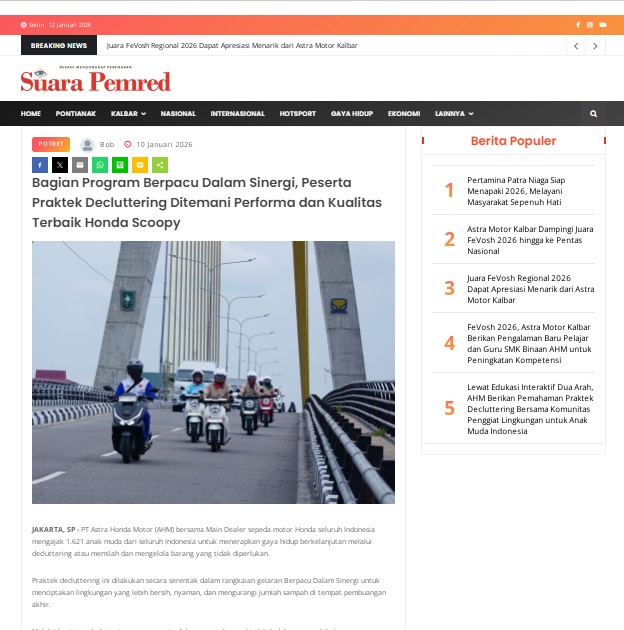 Bagian Program Berpacu Dalam Sinergi, Peserta Praktek Decluttering Ditemani Performa dan Kualitas Terbaik Honda Scoopy by masmul 10 Januari 2026 in Silahkan kunjungi https://www.suarapemredkalbar.com/read/potret/10012026/bagian-program-berpacu-dalam-sinergi-peserta-praktek-decluttering-ditemani-performa-dan-kualitas-terbaik-honda-scoopy. You Might Like Regional Public Launching New ADV160 The SUV Pride Grand Launching New PCX 160 Truly Exceptional! Tetap hati-hati ya bro sist berkendara saat hujan.
