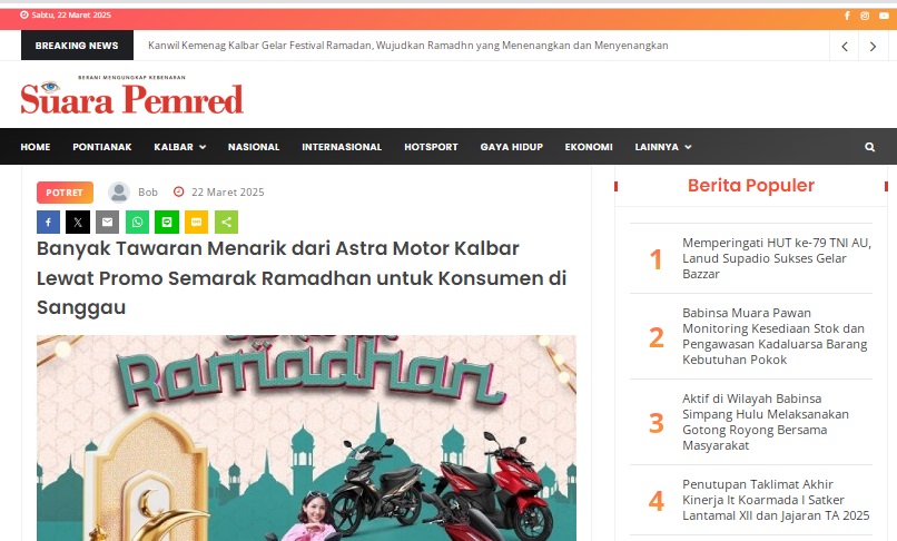Banyak Tawaran Menarik dari Astra Motor Kalbar Lewat Promo Semarak Ramadhan untuk Konsumen di Sanggau by masmul 22 Maret 2025 in Silahkan kunjungi https://www.suarapemredkalbar.com/read/potret/22032025/banyak-tawaran-menarik-dari-astra-motor-kalbar-lewat-promo-semarak-ramadhan-untuk-konsumen-di-sanggau. You Might Like Regional Public Launching New ADV160 The SUV Pride Grand Launching New PCX 160 Truly Exceptional! Tetap hati-hati ya bro sist berkendara saat hujan.