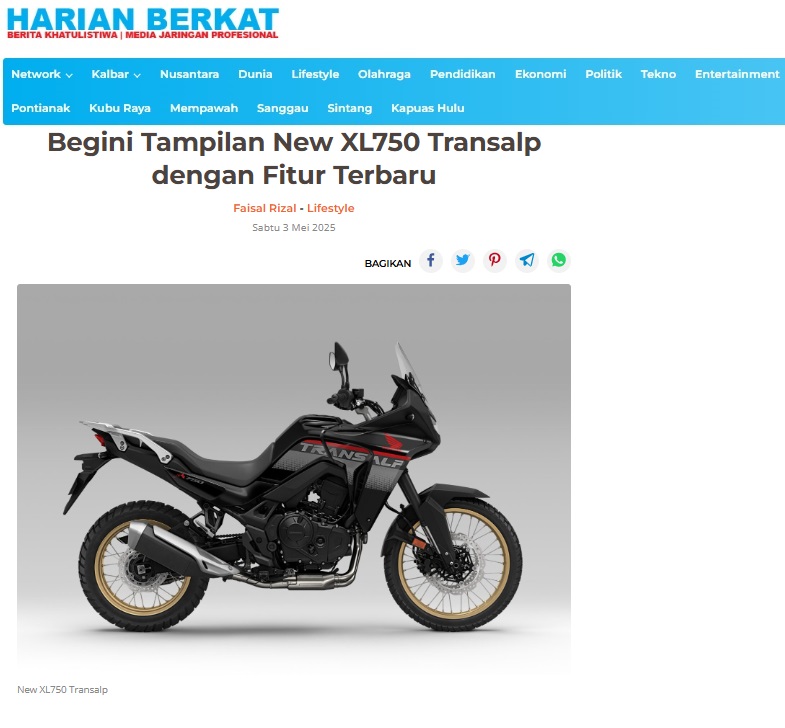 Begini Tampilan New XL750 Transalp dengan Fitur Terbaru by Dodi Dodi 3 Mei 2025 in Silahkan kunjungi https://harianberkat.com/2025/05/03/begini-tampilan-new-xl750-transalp-dengan-fitur-terbaru/. Tags: Asmo Kalbar Astra Motor kalbar Fitur Terbaru Honda Kalbar Motor Honda New XL750 Transalp PT AHM You Might Like Regional Public Launching New ADV160 The SUV Pride Grand Launching New PCX 160 Truly Exceptional! Tetap hati-hati ya bro sist berkendara saat hujan.