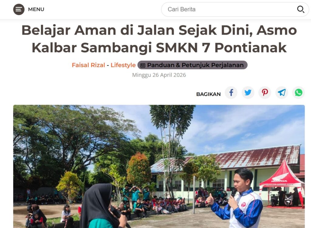 Belajar Aman di Jalan Sejak Dini, Asmo Kalbar Sambangi SMKN 7 Pontianak by Dodi Dodi 26 April 2026 in Silahkan kunjungi https://harianberkat.com/2026/04/26/belajar-aman-di-jalan-sejak-dini-asmo-kalbar-sambangi-smkn-7-pontianak/. You Might Like Regional Public Launching New ADV160 The SUV Pride Grand Launching New PCX 160 Truly Exceptional! Tetap hati-hati ya bro sist berkendara saat hujan.