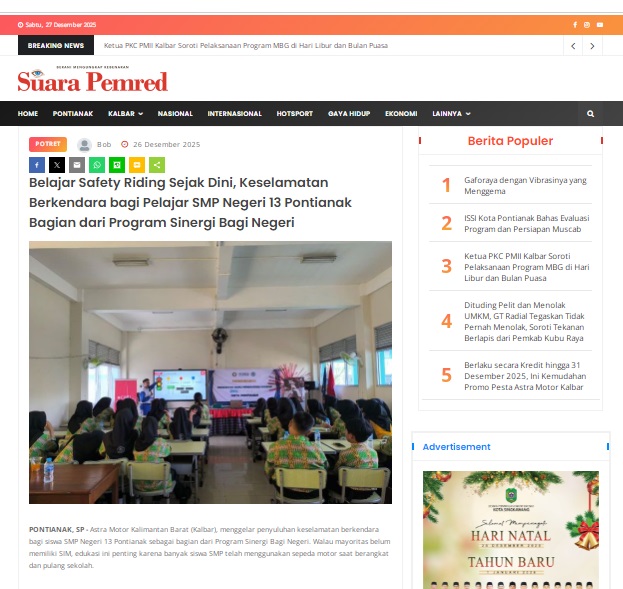 Belajar Safety Riding Sejak Dini, Keselamatan Berkendara bagi Pelajar SMP Negeri 13 Pontianak Bagian dari Program Sinergi Bagi Negeri by masmul 26 Desember 2025 in Silahkan kunjungi https://www.suarapemredkalbar.com/read/potret/26122025/belajar-safety-riding-sejak-dini-keselamatan-berkendara-bagi-pelajar-smp-negeri-13-pontianak-bagian-dari-program-sinergi-bagi-negeri. You Might Like Regional Public Launching New ADV160 The SUV Pride Grand Launching New PCX 160 Truly Exceptional! Tetap hati-hati ya bro sist berkendara saat hujan.
