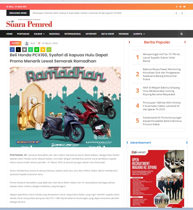 Beli Honda PCX160, Syafari di kapuas Hulu Dapat Promo Menarik Lewat Semarak Ramadhan by masmul 19 Maret 2025 in Silahkan kunjungi https://www.suarapemredkalbar.com/read/potret/19032025/beli-honda-pcx160-syafari-di-kapuas-hulu-dapat-promo-menarik-lewat-semarak-ramadhan. You Might Like Regional Public Launching New ADV160 The SUV Pride Grand Launching New PCX 160 Truly Exceptional! Tetap hati-hati ya bro sist berkendara saat hujan.