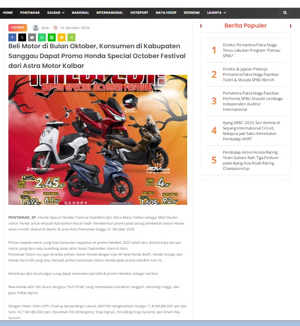 Beli Motor di Bulan Oktober, Konsumen di Kabupaten Sanggau Dapat Promo Honda Special October Festival dari Astra Motor Kalbar by masmul 16 Oktober 2025 in Silahkan kunjungi https://www.suarapemredkalbar.com/read/potret/16102025/beli-motor-di-bulan-oktober-konsumen-di-kabupaten-sanggau-dapat-promo-honda-special-october-festival-dari-astra-motor-kalbar. You Might Like Regional Public Launching New ADV160 The SUV Pride Grand Launching New PCX 160 Truly Exceptional! Tetap hati-hati ya bro sist berkendara saat hujan.