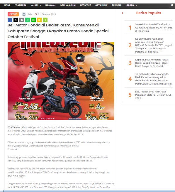Beli Motor Honda di Dealer Resmi, Konsumen di Kabupaten Sanggau Rayakan Promo Honda Special October Festival by masmul 21 Oktober 2025 in Silahkan kunjungi https://www.suarapemredkalbar.com/read/potret/21102025/beli-motor-honda-di-dealer-resmi-konsumen-di-kabupaten-sanggau-rayakan-promo-honda-special-october-festival. You Might Like Regional Public Launching New ADV160 The SUV Pride Grand Launching New PCX 160 Truly Exceptional! Tetap hati-hati ya bro sist berkendara saat hujan.