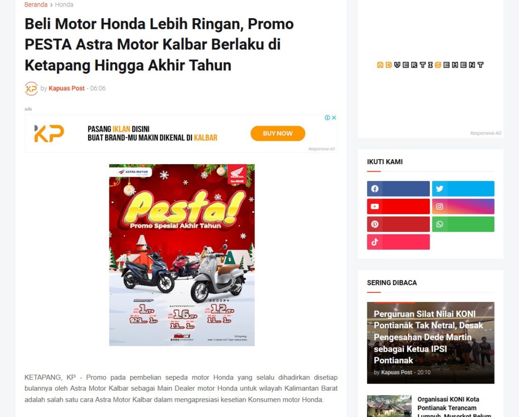 Beli Motor Honda Lebih Ringan, Promo PESTA Astra Motor Kalbar Berlaku di Ketapang Hingga Akhir Tahun by Muhammad Arif 18 Desember 2025 in Silahkan kunjungi https://www.kapuaspost.web.id/2025/12/beli-motor-honda-lebih-ringan-promo.html. Tags: astra Astra Motor kalbar Astra Motor Pontianak astramotor honda kalbar pontianak sepeda motor You Might Like Regional Public Launching New ADV160 The SUV Pride Grand Launching New PCX 160 Truly Exceptional! Tetap hati-hati ya bro sist berkendara saat hujan.