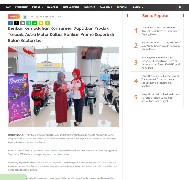 Berikan Kemudahan Konsumen Dapatkan Produk Terbaik, Astra Motor Kalbar Berikan Promo Superb di Bulan September by masmul 15 September 2025 in Silahkan kunjungi https://www.suarapemredkalbar.com/read/potret/15092025/berikan-kemudahan-konsumen-dapatkan-produk-terbaik-astra-motor-kalbar-berikan-promo-superb-di-bulan-september. You Might Like Regional Public Launching New ADV160 The SUV Pride Grand Launching New PCX 160 Truly Exceptional! Tetap hati-hati ya bro sist berkendara saat hujan.
