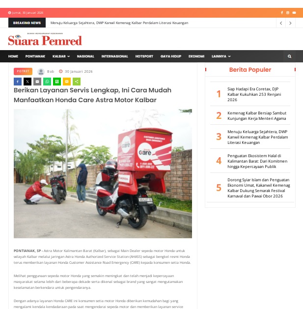 Berikan Layanan Servis Lengkap, Ini Cara Mudah Manfaatkan Honda Care Astra Motor Kalbar by masmul 30 Januari 2026 in Silahkan kunjungi https://www.suarapemredkalbar.com/read/potret/30012026/berikan-layanan-servis-lengkap-ini-cara-mudah-manfaatkan-honda-care-astra-motor-kalbar. You Might Like Regional Public Launching New ADV160 The SUV Pride Grand Launching New PCX 160 Truly Exceptional! Tetap hati-hati ya bro sist berkendara saat hujan.
