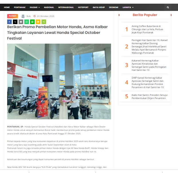 Berikan Promo Pembelian Motor Honda, Asmo Kalbar Tingkatan Layanan Lewat Honda Special October Festival by masmul 23 Oktober 2025 in Silahkan kunjungi https://www.suarapemredkalbar.com/read/potret/23102025/berikan-promo-pembelian-motor-honda-asmo-kalbar-tingkatan-layanan-lewat-honda-special-october-festival. You Might Like Regional Public Launching New ADV160 The SUV Pride Grand Launching New PCX 160 Truly Exceptional! Tetap hati-hati ya bro sist berkendara saat hujan.