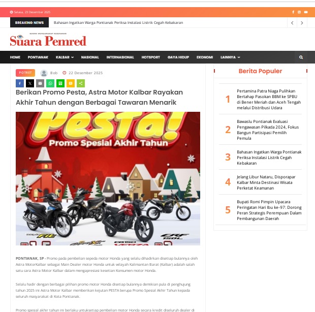 Berikan Promo Pesta, Astra Motor Kalbar Rayakan Akhir Tahun dengan Berbagai Tawaran Menarik by masmul 22 Desember 2025 in Silahkan kunjungi https://www.suarapemredkalbar.com/read/potret/22122025/berikan-promo-pesta-astra-motor-kalbar-rayakan-akhir-tahun-dengan-berbagai-tawaran-menarik. You Might Like Regional Public Launching New ADV160 The SUV Pride Grand Launching New PCX 160 Truly Exceptional! Tetap hati-hati ya bro sist berkendara saat hujan.