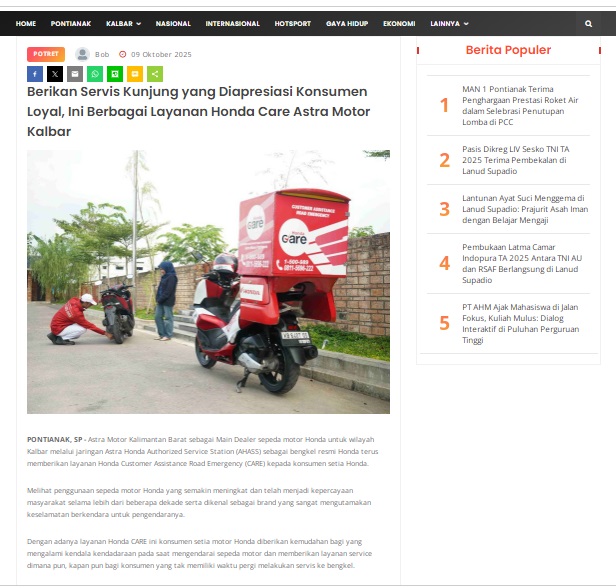 Berikan Servis Kunjung yang Diapresiasi Konsumen Loyal, Ini Berbagai Layanan Honda Care Astra Motor Kalbar by masmul 9 Oktober 2025 in Silahkan kunjungi https://www.suarapemredkalbar.com/read/potret/09102025/berikan-servis-kunjung-yang-diapresiasi-konsumen-loyal-ini-berbagai-layanan-honda-care-astra-motor-kalbar. You Might Like Regional Public Launching New ADV160 The SUV Pride Grand Launching New PCX 160 Truly Exceptional! Tetap hati-hati ya bro sist berkendara saat hujan.