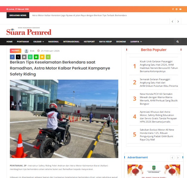 Berikan Tips Keselamatan Berkendara saat Ramadhan, Astra Motor Kalbar Perkuat Kampanye Safety Riding by masmul 25 Februari 2026 in Silahkan kunjungi https://www.suarapemredkalbar.com/read/potret/25022026/berikan-tips-keselamatan-berkendara-saat-ramadhan-astra-motor-kalbar-perkuat-kampanye-safety-riding. You Might Like Regional Public Launching New ADV160 The SUV Pride Grand Launching New PCX 160 Truly Exceptional! Tetap hati-hati ya bro sist berkendara saat hujan.