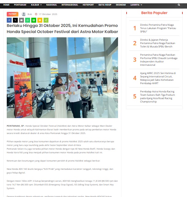 Berlaku Hingga 31 Oktober 2025, Ini Kemudahan Promo Honda Special October Festival dari Astra Motor Kalbar by masmul 17 Oktober 2025 in Silahkan kunjungi https://www.suarapemredkalbar.com/read/potret/17102025/berlaku-hingga-31-oktober-2025-ini-kemudahan-promo-honda-special-october-festival-dari-astra-motor-kalbar. You Might Like Regional Public Launching New ADV160 The SUV Pride Grand Launching New PCX 160 Truly Exceptional! Tetap hati-hati ya bro sist berkendara saat hujan.