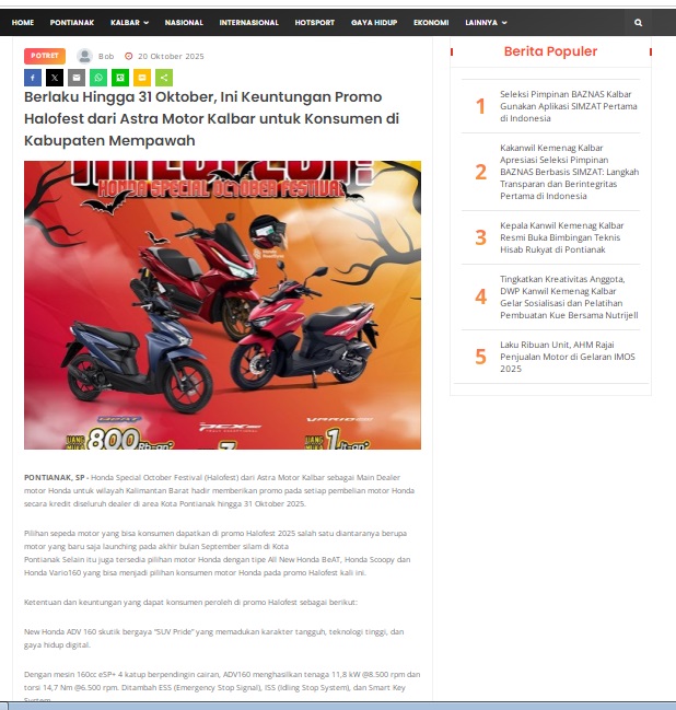 Berlaku Hingga 31 Oktober, Ini Keuntungan Promo Halofest dari Astra Motor Kalbar untuk Konsumen di Kabupaten Mempawah Photo of Berlaku Hingga 31 Oktober, Ini Keuntungan Promo Halofest dari Astra Motor Kalbar untuk Konsumen di Kabupaten Mempawah by masmul 20 Oktober 2025 in Silahkan kunjungi https://www.suarapemredkalbar.com/read/potret/20102025/berlaku-hingga-31-oktober-ini-keuntungan-promo-halofest-dari-astra-motor-kalbar-untuk-konsumen-di-kabupaten-mempawah. You Might Like Regional Public Launching New ADV160 The SUV Pride Grand Launching New PCX 160 Truly Exceptional! Tetap hati-hati ya bro sist berkendara saat hujan.
