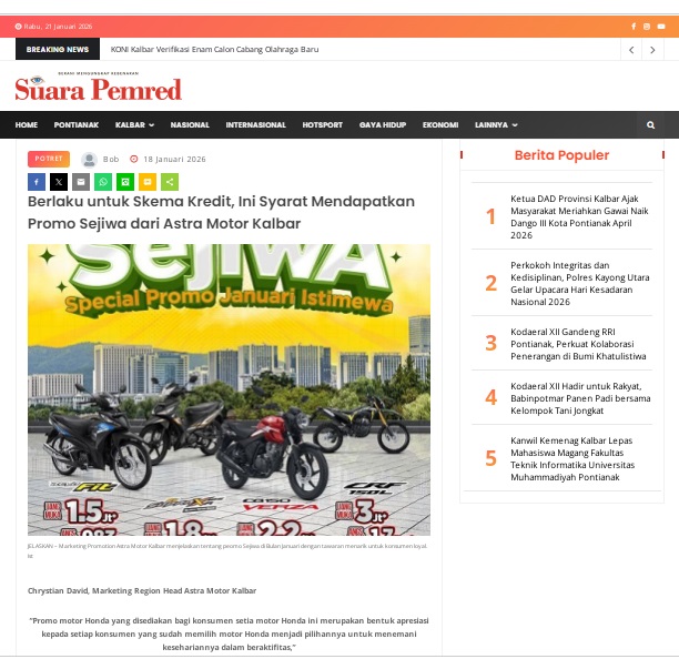 Berlaku untuk Skema Kredit, Ini Syarat Mendapatkan Promo Sejiwa dari Astra Motor Kalbar by masmul 18 Januari 2026 in Silahkan kunjungi https://www.suarapemredkalbar.com/read/potret/18012026/berlaku-untuk-skema-kredit-ini-syarat-mendapatkan-promo-sejiwa-dari-astra-motor-kalbar. You Might Like Regional Public Launching New ADV160 The SUV Pride Grand Launching New PCX 160 Truly Exceptional! Tetap hati-hati ya bro sist berkendara saat hujan.