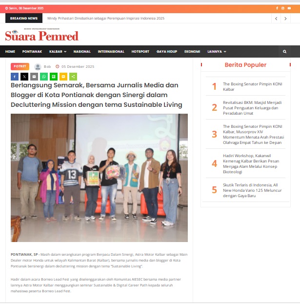 Berlangsung Semarak, Bersama Jurnalis Media dan Blogger di Kota Pontianak dengan Sinergi dalam Decluttering Mission dengan tema Sustainable Living by masmul 5 Desember 2025 in Silahkan kunjungi https://www.suarapemredkalbar.com/read/potret/05122025/berlangsung-semarak-bersama-jurnalis-media-dan-blogger-di-kota-pontianak-dengan-sinergi-dalam-decluttering-mission-dengan-tema-sustainable-living. You Might Like Regional Public Launching New ADV160 The SUV Pride Grand Launching New PCX 160 Truly Exceptional! Tetap hati-hati ya bro sist berkendara saat hujan.