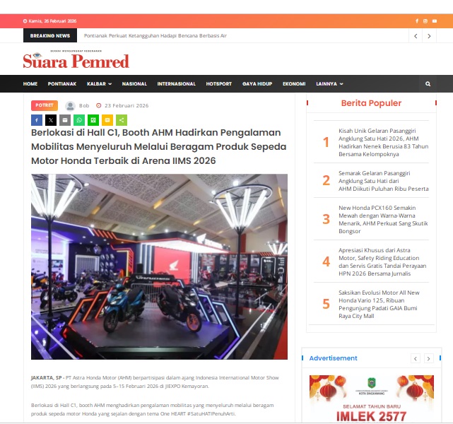 Berlokasi di Hall C1, Booth AHM Hadirkan Pengalaman Mobilitas Menyeluruh Melalui Beragam Produk Sepeda Motor Honda Terbaik di Arena IIMS 2026 by masmul 23 Februari 2026 in Silahkan kunjungi https://www.suarapemredkalbar.com/read/potret/23022026/berlokasi-di-hall-c1-booth-ahm-hadirkan-pengalaman-mobilitas-menyeluruh-melalui-beragam-produk-sepeda-motor-honda-terbaik-di-arena-iims-2026. You Might Like Regional Public Launching New ADV160 The SUV Pride Grand Launching New PCX 160 Truly Exceptional! Tetap hati-hati ya bro sist berkendara saat hujan.