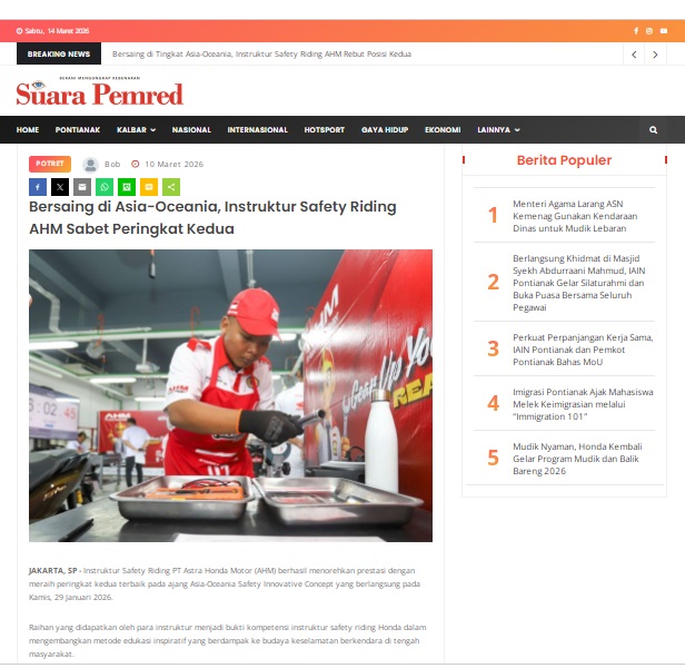 Bersaing di Asia-Oceania, Instruktur Safety Riding AHM Sabet Peringkat Kedua by masmul 10 Maret 2026 in Silahkan kunjungi https://www.suarapemredkalbar.com/read/potret/10032026/bersaing-di-asia-oceania-instruktur-safety-riding-ahm-sabet-peringkat-kedua. You Might Like Regional Public Launching New ADV160 The SUV Pride Grand Launching New PCX 160 Truly Exceptional! Tetap hati-hati ya bro sist berkendara saat hujan.