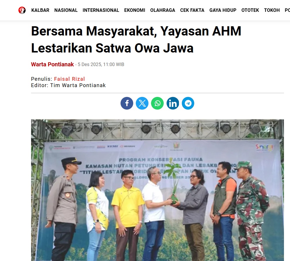 Bersama Masyarakat, Yayasan AHM Lestarikan Satwa Owa Jawa by Faisal Rizal 5 Desember 2025 in Silahkan kunjungi https://wartapontianak.pikiran-rakyat.com/gaya-hidup/pr-1179840857/bersama-masyarakat-yayasan-ahm-lestarikan-satwa-owa-jawa. You Might Like Regional Public Launching New ADV160 The SUV Pride Grand Launching New PCX 160 Truly Exceptional! Tetap hati-hati ya bro sist berkendara saat hujan.