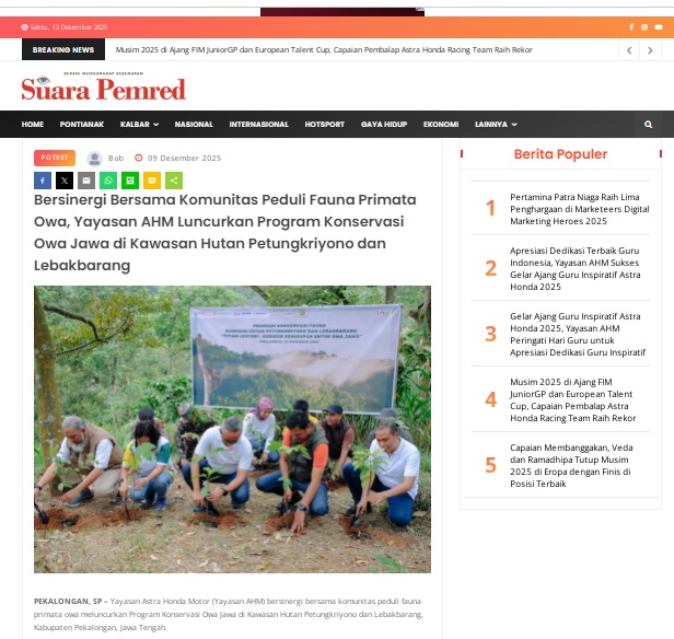 Bersinergi Bersama Komunitas Peduli Fauna Primata Owa, Yayasan AHM Luncurkan Program Konservasi Owa Jawa di Kawasan Hutan Petungkriyono dan Lebakbarang by masmul 9 Desember 2025 in Silahkan kunjungi https://www.suarapemredkalbar.com/read/potret/09122025/bersinergi-bersama-komunitas-peduli-fauna-primata-owa-yayasan-ahm-luncurkan-program-konservasi-owa-jawa-di-kawasan-hutan-petungkriyono-dan-lebakbarang-1. You Might Like Regional Public Launching New ADV160 The SUV Pride Grand Launching New PCX 160 Truly Exceptional! Tetap hati-hati ya bro sist berkendara saat hujan.
