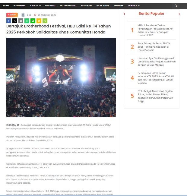 Bertajuk Brotherhood Festival, HBD Edisi ke-14 Tahun 2025 Perkokoh Solidaritas Khas Komunitas Honda by masmul 5 Oktober 2025 in Silahkan kunjungi https://www.suarapemredkalbar.com/read/potret/05102025/bertajuk-brotherhood-festival-hbd-edisi-ke-14-tahun-2025-perkokoh-solidaritas-khas-komunitas-honda. You Might Like Regional Public Launching New ADV160 The SUV Pride Grand Launching New PCX 160 Truly Exceptional! Tetap hati-hati ya bro sist berkendara saat hujan.