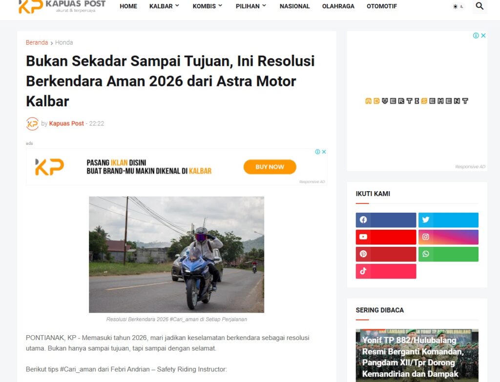Bukan Sekadar Sampai Tujuan, Ini Resolusi Berkendara Aman 2026 dari Astra Motor Kalbar