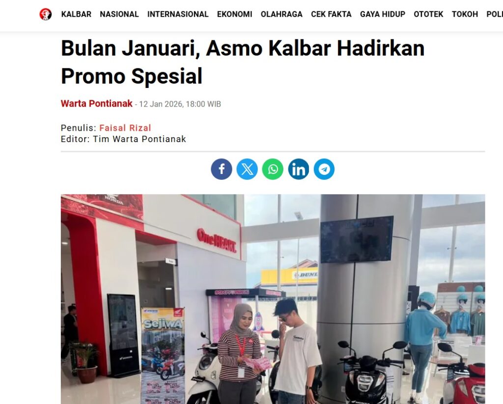Bulan Januari, Asmo Kalbar Hadirkan Promo Spesial by Faisal Rizal 12 Januari 2026 in Silahkan kunjungi https://wartapontianak.pikiran-rakyat.com/gaya-hidup/pr-1179925617/bulan-januari-asmo-kalbar-hadirkan-promo-spesial. You Might Like Regional Public Launching New ADV160 The SUV Pride Grand Launching New PCX 160 Truly Exceptional! Tetap hati-hati ya bro sist berkendara saat hujan.
