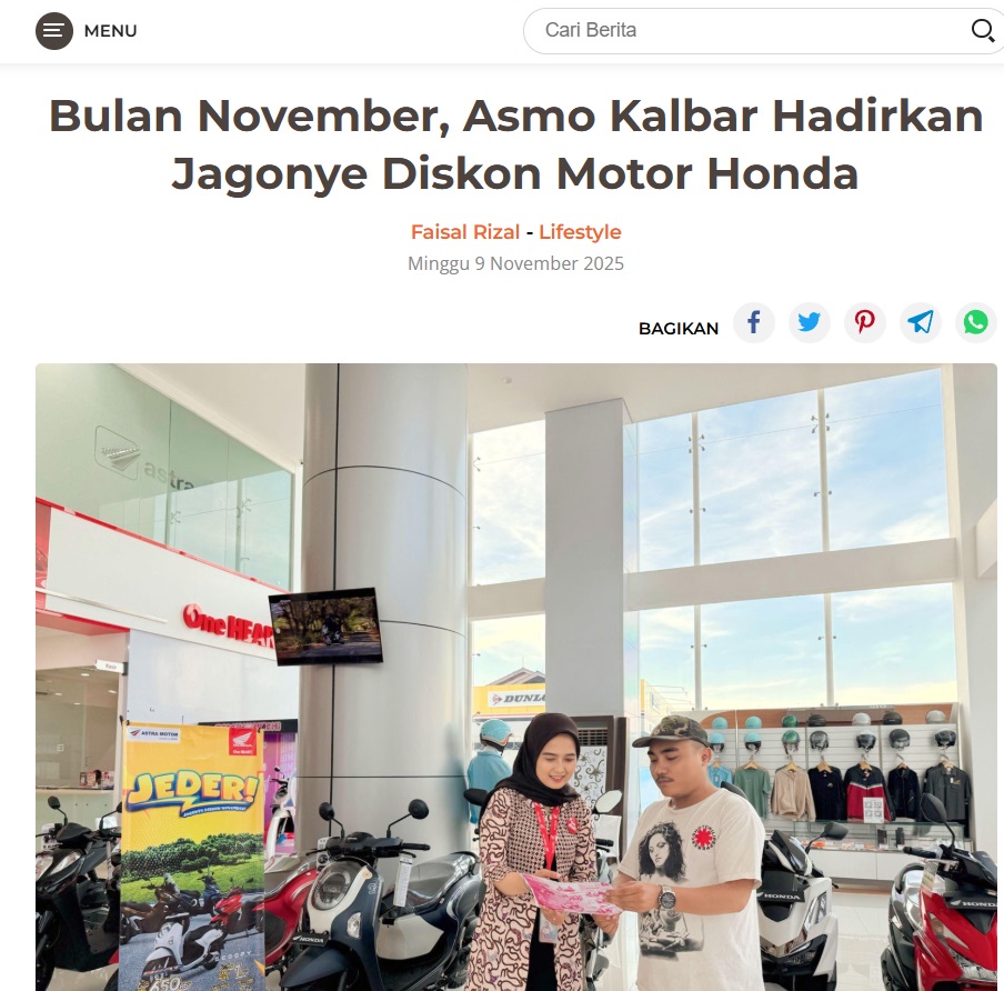 Bulan November, Asmo Kalbar Hadirkan Jagonye Diskon Motor Honda by Dodi Dodi 9 November 2025 in Silahkan kunjungi https://harianberkat.com/2025/11/09/bulan-november-asmo-kalbar-hadirkan-jagonye-diskon-motor-honda/. You Might Like Regional Public Launching New ADV160 The SUV Pride Grand Launching New PCX 160 Truly Exceptional! Tetap hati-hati ya bro sist berkendara saat hujan.