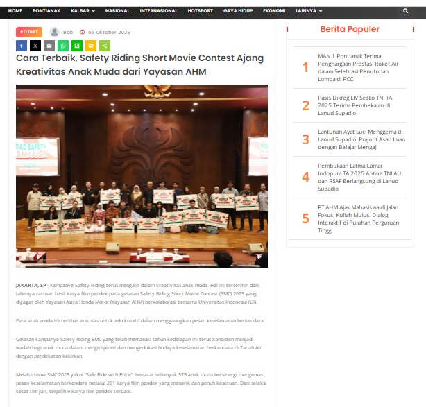 Cara Terbaik, Safety Riding Short Movie Contest Ajang Kreativitas Anak Muda dari Yayasan AHM by masmul 9 Oktober 2025 in Silahkan kunjungi https://www.suarapemredkalbar.com/read/potret/09102025/cara-terbaik-safety-riding-short-movie-contest-ajang-kreativitas-anak-muda-dari-yayasan-ahm. You Might Like Regional Public Launching New ADV160 The SUV Pride Grand Launching New PCX 160 Truly Exceptional! Tetap hati-hati ya bro sist berkendara saat hujan.