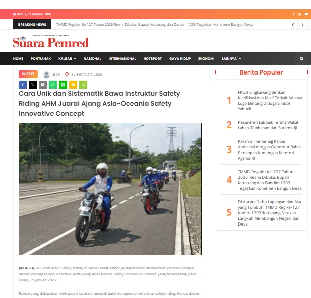 Cara Unik dan Sistematik Bawa Instruktur Safety Riding AHM Juarai Ajang Asia-Oceania Safety Innovative Concept by masmul 12 Februari 2026 in Silahkan kunjungi https://www.suarapemredkalbar.com/read/potret/12022026/cara-unik-dan-sistematik-bawa-instruktur-safety-riding-ahm-juarai-ajang-asia-oceania-safety-innovative-concept. You Might Like Regional Public Launching New ADV160 The SUV Pride Grand Launching New PCX 160 Truly Exceptional! Tetap hati-hati ya bro sist berkendara saat hujan.