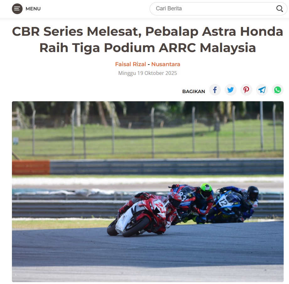 CBR Series Melesat, Pebalap Astra Honda Raih Tiga Podium ARRC Malaysia by Dodi Dodi 19 Oktober 2025 in Silahkan kunjungi https://harianberkat.com/2025/10/19/cbr-series-melesat-pebalap-astra-honda-raih-tiga-podium-arrc-malaysia/. You Might Like Regional Public Launching New ADV160 The SUV Pride Grand Launching New PCX 160 Truly Exceptional! Tetap hati-hati ya bro sist berkendara saat hujan.