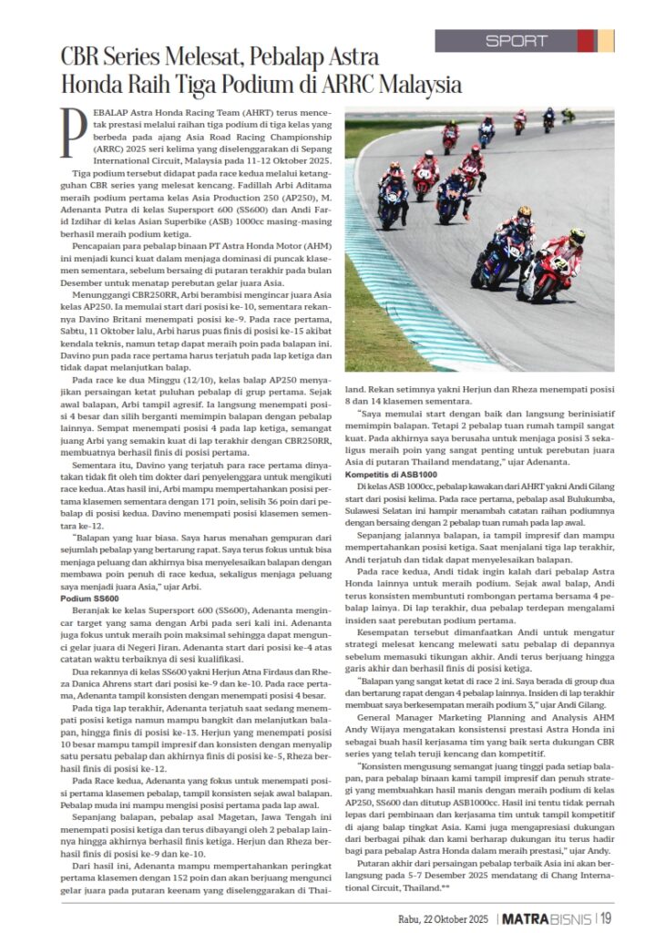 CBR Series Melesat, Pebalap Astra Honda Raih Tiga Podium di ARRC Malaysia by Sri Yuliantiningsih 22 Oktober 2025 in Silahkan buka . You Might Like Regional Public Launching New ADV160 The SUV Pride Grand Launching New PCX 160 Truly Exceptional! Tetap hati-hati ya bro sist berkendara saat hujan.