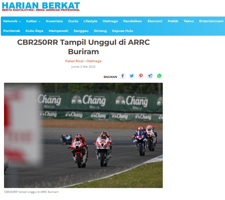 CBR250RR Tampil Unggul di ARRC Buriram by Dodi Dodi 2 Mei 2025 in Silahkan kunjungi https://harianberkat.com/2025/05/02/cbr250rr-tampil-unggul-di-arrc-buriram/. Tags: ARRC Buriram Asmo Kalbar Astra Motor kalbar cbr250rr Honda Kalbar Motor Honda PT AHM Tampil Unggul You Might Like Regional Public Launching New ADV160 The SUV Pride Grand Launching New PCX 160 Truly Exceptional! Tetap hati-hati ya bro sist berkendara saat hujan.