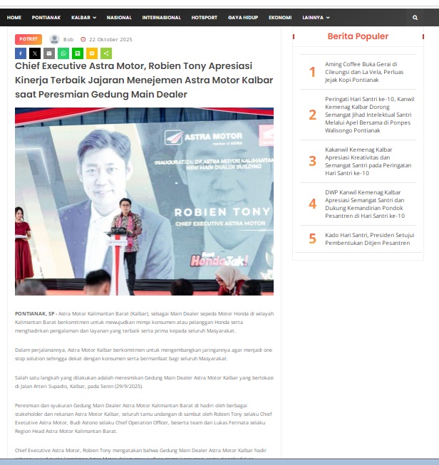 Chief Executive Astra Motor, Robien Tony Apresiasi Kinerja Terbaik Jajaran Menejemen Astra Motor Kalbar saat Peresmian Gedung Main Dealer by masmul 22 Oktober 2025 in Silahkan kunjungi https://www.suarapemredkalbar.com/read/potret/22102025/chief-executive-astra-motor-robien-tony-apresiasi-kinerja-terbaik-jajaran-menejemen-astra-motor-kalbar-saat-peresmian-gedung-main-dealer. You Might Like Regional Public Launching New ADV160 The SUV Pride Grand Launching New PCX 160 Truly Exceptional! Tetap hati-hati ya bro sist berkendara saat hujan.