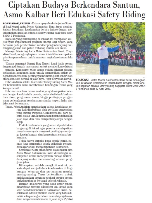 Ciptakan Budaya Berkendara Santun, Asmo Kalbar Beri Edukasi Safety Riding by Nina Soraya 28 April 2026 in Silahkan buka . You Might Like Regional Public Launching New ADV160 The SUV Pride Grand Launching New PCX 160 Truly Exceptional! Tetap hati-hati ya bro sist berkendara saat hujan.