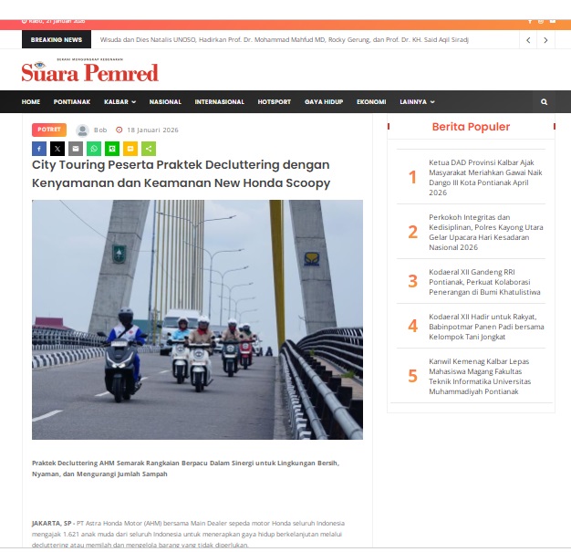 City Touring Peserta Praktek Decluttering dengan Kenyamanan dan Keamanan New Honda Scoopy by masmul 18 Januari 2026 in Silahkan kunjungi https://www.suarapemredkalbar.com/read/potret/18012026/city-touring-peserta-praktek-decluttering-dengan-kenyamanan-dan-keamanan-new-honda-scoopy. You Might Like Regional Public Launching New ADV160 The SUV Pride Grand Launching New PCX 160 Truly Exceptional! Tetap hati-hati ya bro sist berkendara saat hujan.
