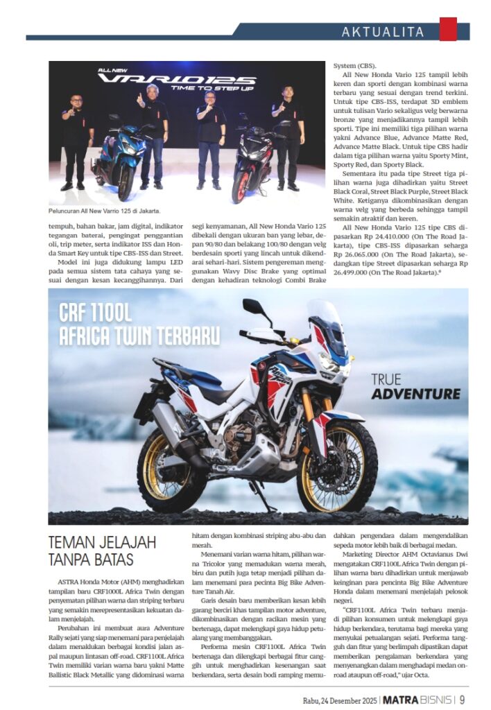 CRF 1100L – AFRICA TWIN TERBARU TRUE ADVENTURE by Sri Yuliantiningsih 19 Desember 2025 in Silahkan buka . You Might Like Regional Public Launching New ADV160 The SUV Pride Grand Launching New PCX 160 Truly Exceptional! Tetap hati-hati ya bro sist berkendara saat hujan.