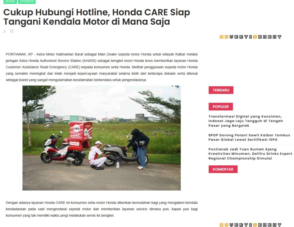 Cukup Hubungi Hotline, Honda CARE Siap Tangani Kendala Motor di Mana Saja by Muhammad Arif 26 Agustus 2025 in Silahkan kunjungi https://www.kapuaspost.web.id/2025/08/cukup-hubungi-hotline-honda-care-siap.html. Tags: astra Astra Motor kalbar Astra Motor Pontianak astramotor honda kalbar pontianak sepeda motor You Might Like Regional Public Launching New ADV160 The SUV Pride Grand Launching New PCX 160 Truly Exceptional! Tetap hati-hati ya bro sist berkendara saat hujan.
