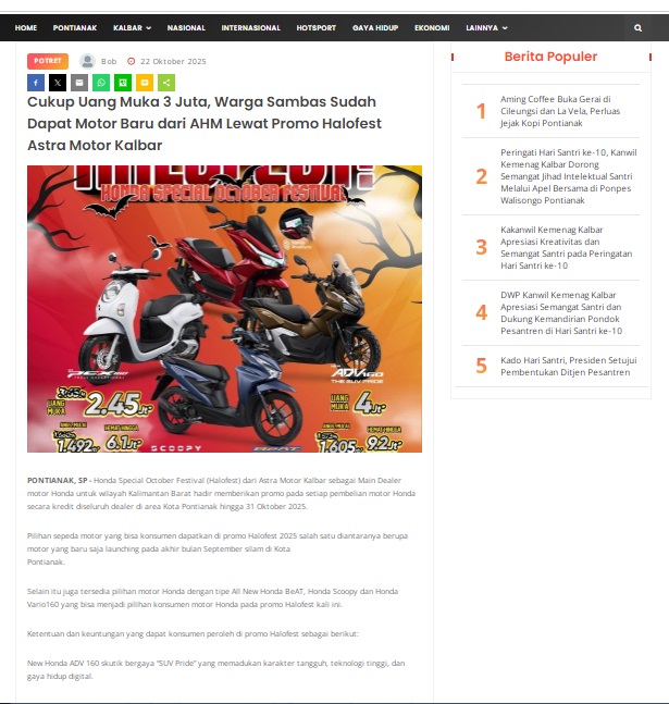 Cukup Uang Muka 3 Juta, Warga Sambas Sudah Dapat Motor Baru dari AHM Lewat Promo Halofest Astra Motor Kalbar by masmul 22 Oktober 2025 in Silahkan kunjungi https://www.suarapemredkalbar.com/read/potret/22102025/cukup-uang-muka-3-juta-warga-sambas-sudah-dapat-motor-baru-dari-ahm-lewat-promo-halofest-astra-motor-kalbar. You Might Like Regional Public Launching New ADV160 The SUV Pride Grand Launching New PCX 160 Truly Exceptional! Tetap hati-hati ya bro sist berkendara saat hujan.