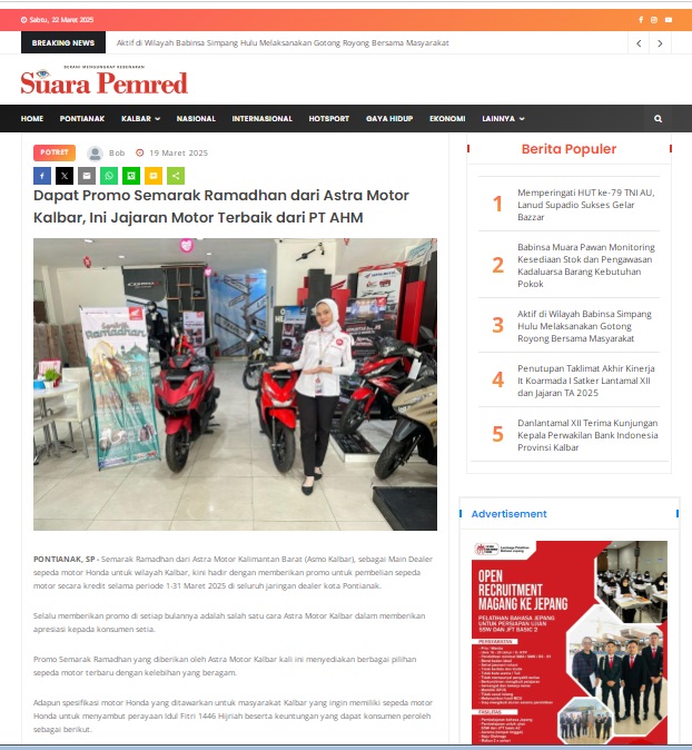 Dapat Promo Semarak Ramadhan dari Astra Motor Kalbar, Ini Jajaran Motor Terbaik dari PT AHM by masmul 19 Maret 2025 in Silahkan kunjungi https://www.suarapemredkalbar.com/read/potret/19032025/dapat-promo-semarak-ramadhan-dari-astra-motor-kalbar-ini-jajaran-motor-terbaik-dari-pt-ahm. You Might Like Regional Public Launching New ADV160 The SUV Pride Grand Launching New PCX 160 Truly Exceptional! Tetap hati-hati ya bro sist berkendara saat hujan.