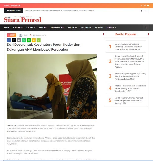 Dari Desa untuk Kesehatan: Peran Kader dan Dukungan AHM Membawa Perubahan by masmul 6 Maret 2026 in Silahkan kunjungi https://www.suarapemredkalbar.com/read/potret/06032026/dari-desa-untuk-kesehatan-peran-kader-dan-dukungan-ahm-membawa-perubahan. You Might Like Regional Public Launching New ADV160 The SUV Pride Grand Launching New PCX 160 Truly Exceptional! Tetap hati-hati ya bro sist berkendara saat hujan.
